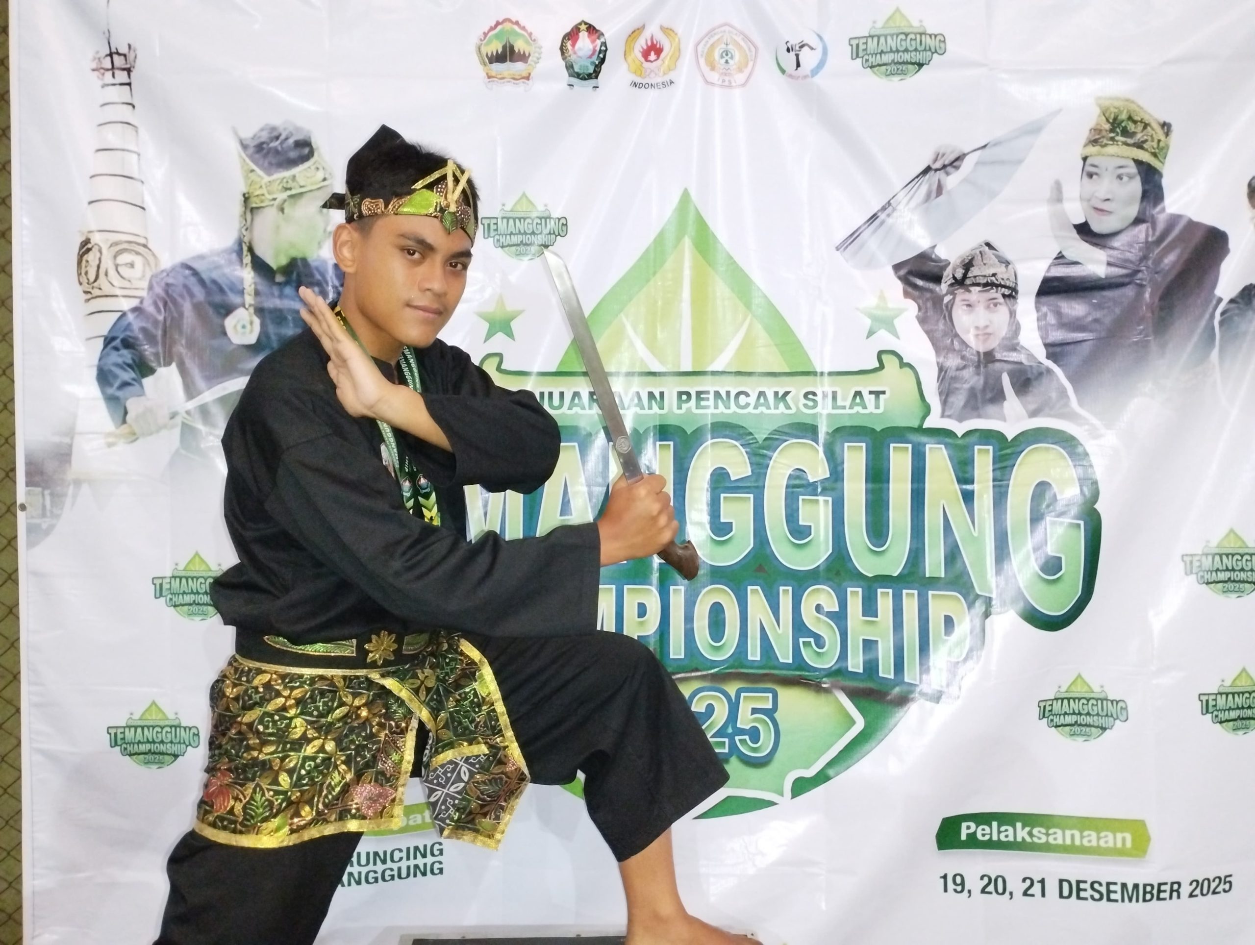Akbar Ridho Hartono, atlet multitalenta rebut dua medali emas Kejuaraan Pencak Silat Temanggung Championship 2025, Minggu (21/12/2025). (foto: Akbar/Syakira)