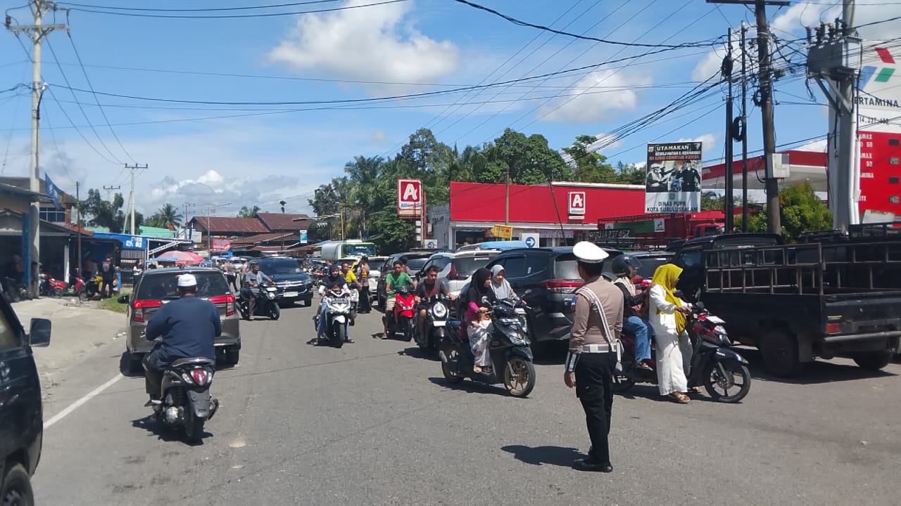 Polisi dan Dishub Kerja Ekstra Atur Kemacetan Melihat penumpukan kendaraan di dua titik berbeda, Satuan Lalu Lintas Polres Subulussalam turun langsung mengatur situasi.