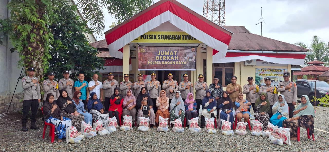 Polres Nagan Raya kembali melaksanakan program Jum’at Berkah dengan membagikan paket sembako kepada masyarakat kurang mampu. Kegiatan ini berlangsung pada Jumat (29/8/2025) sekira pukul 09.00 WIB di Mapolsek Seunagan Timur, Polres Nagan Raya.