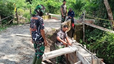Kerja keras Personel Satgas TMMD Reguler ke-127 Kodim 0105/Abar bersama masyarakat akhirnya membuahkan hasil maksimal. Pengecoran wingwall sebagai bagian penting dari sasaran fisik berhasil dituntaskan 100 persen di Desa Pasi Aceh, Kecamatan Woyla, Minggu (1/3/2026)
