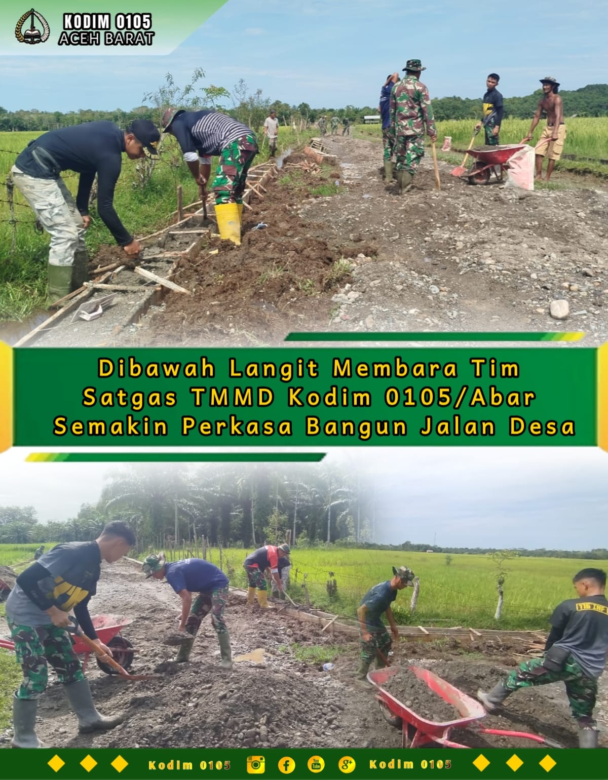 Di bawah terik langit yang membara, semangat pengabdian tak pernah padam. Gagah perkasa, Tim Satgas TMMD Reguler ke-127 Kodim 0105/Abar bersama masyarakat terus menggeber pembangunan jalan di Desa Pasi Aceh, Kecamatan Woyla, Sabtu (28/2/2026)