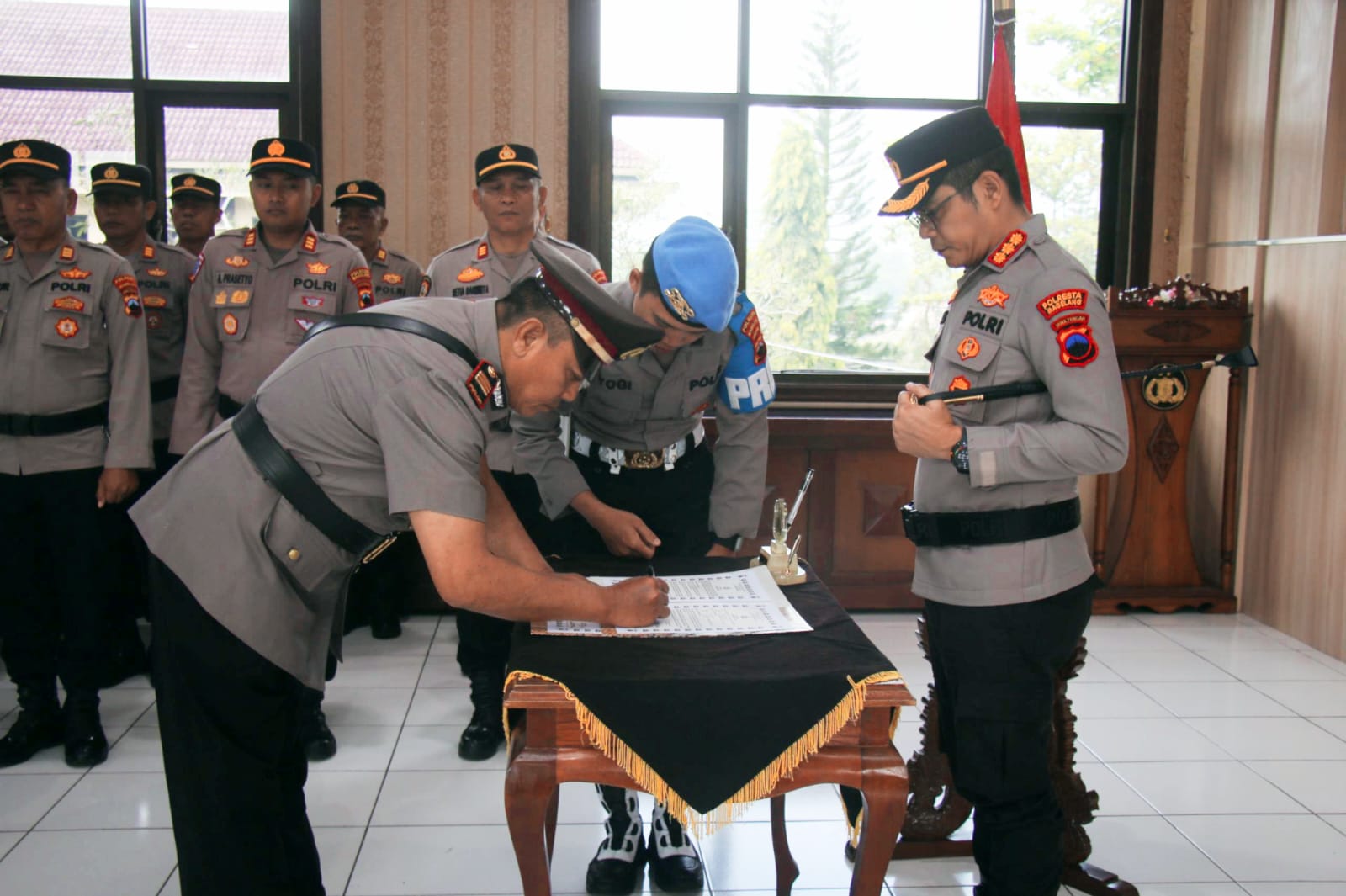 Prosesi sertijab diawali dengan laporan komandan upacara, penghormatan pasukan, serta pembacaan keputusan Kapolda Jawa Tengah. Selanjutnya dilakukan pengambilan sumpah jabatan yang dipimpin langsung oleh inspektur upacara, disertai penandatanganan berita acara serah terima jabatan, naskah sumpah jabatan, serta pakta integritas.
