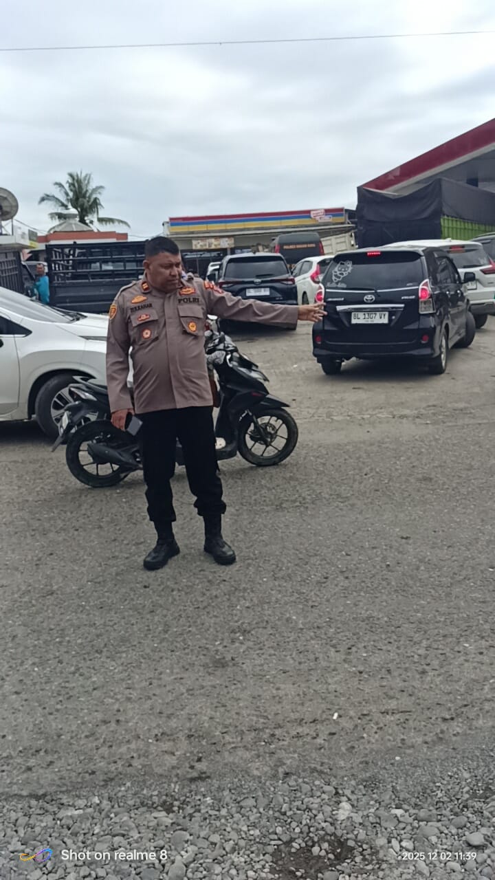 Kapolsek Kuala beserta Personel Melaksanakan pengaturan spontan lalu lintas demi menghindari kemacetan yg terjadi di SPBU Jln. Nasional Meulaboh – Tapak Tuan, Desa Blang Muko Kec. Kuala Kabupaten Nagan Raya, pukul 11:00. Wib s/d 12.31 Wib, Selasa 02/12/2025