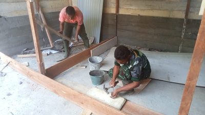 Di tengah semangat kebersamaan, Personel Satgas bersama masyarakat bahu-membahu merangkai tiang demi tiang balok kayu. Ketukan palu yang beradu dengan paku terdengar tiada henti, menandai proses berdirinya rangka bangunan yang kelak menjadi tempat tinggal layak huni bagi warga penerima manfaat.