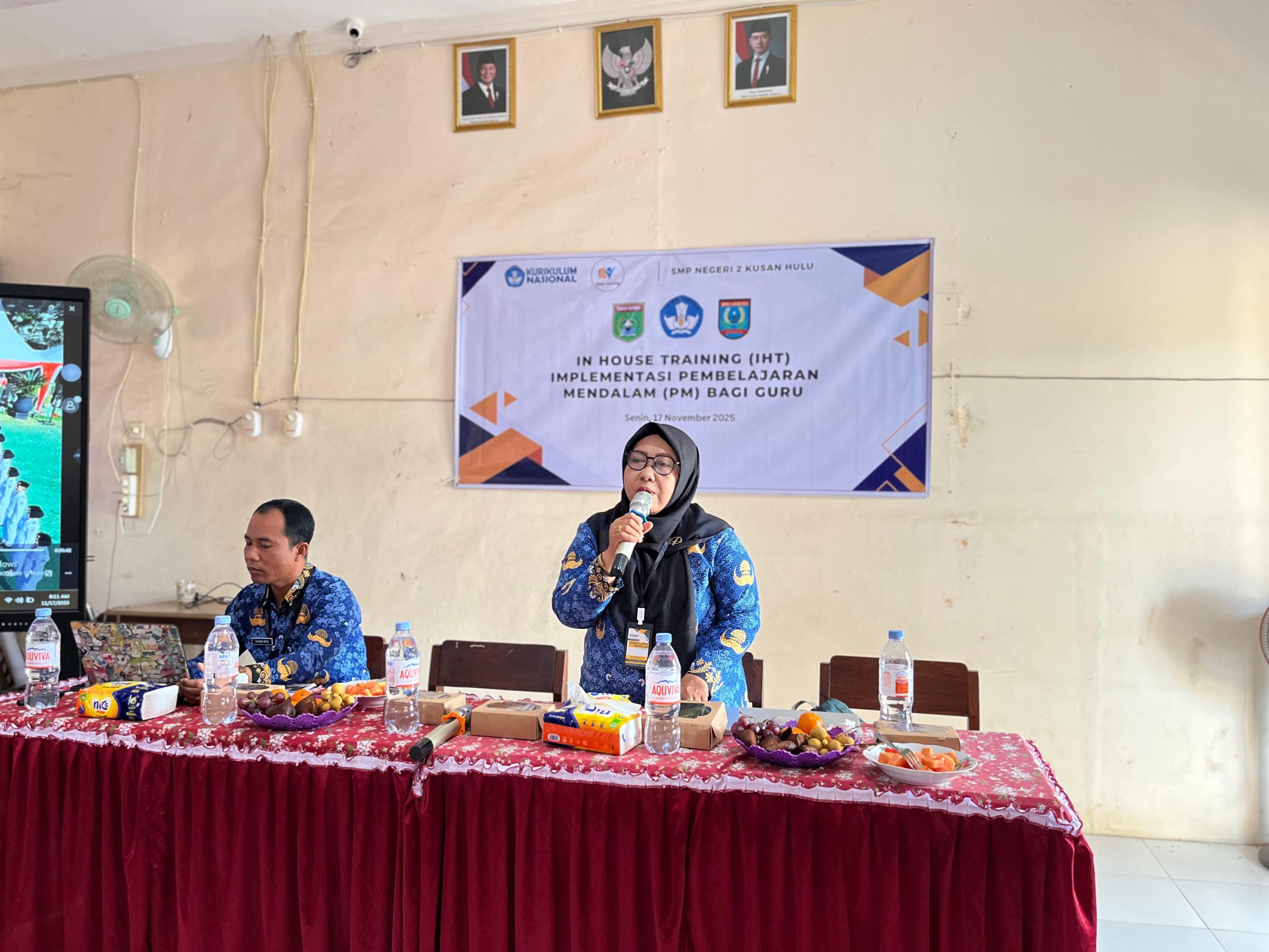 Kepala SMP Negeri 2 Kusan Hulu, Sri Supadmi, menyampaikan bahwa kegiatan ini merupakan langkah penting untuk memastikan guru mampu menerapkan pembelajaran yang berpusat pada murid.