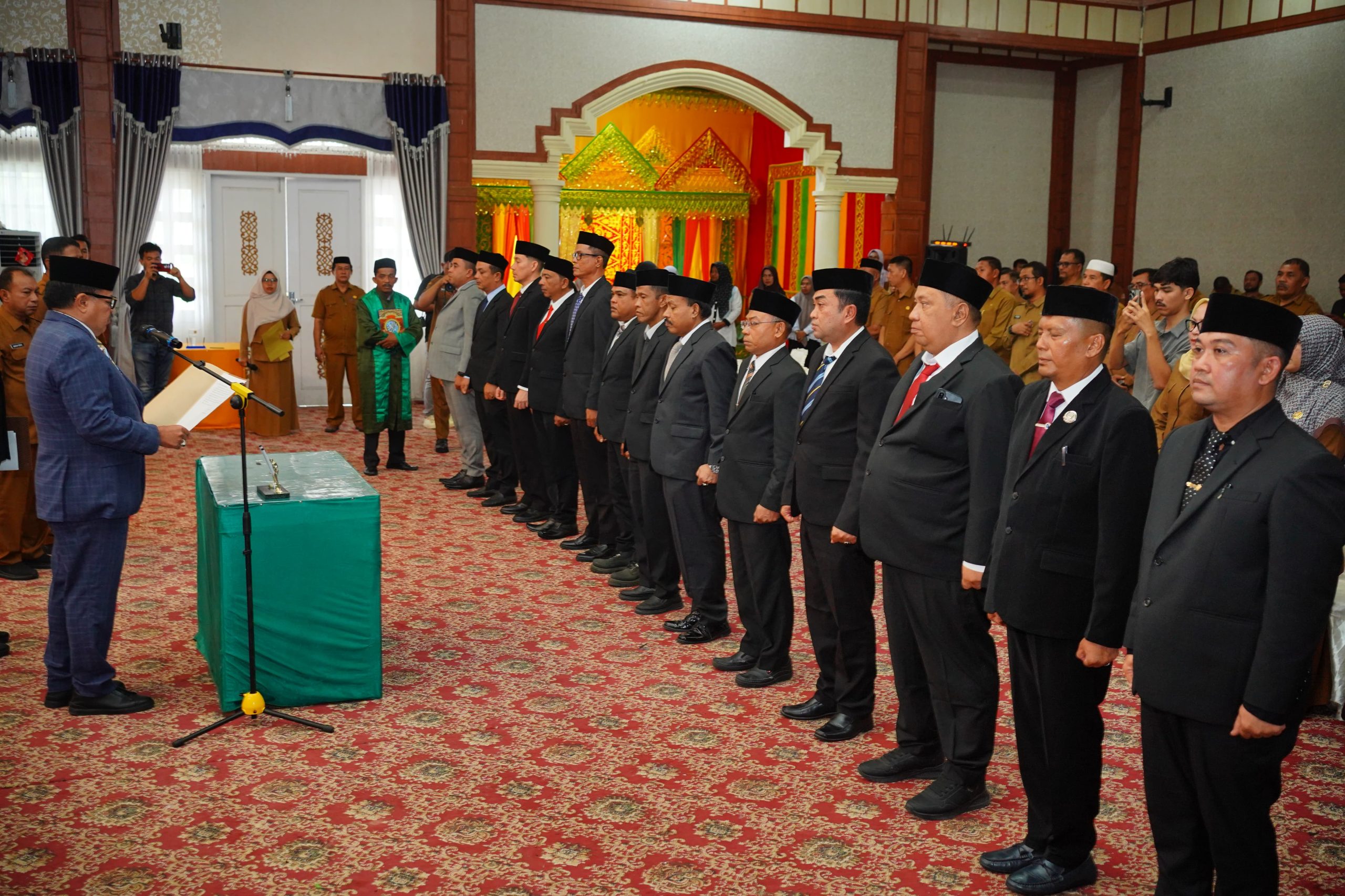 Prosesi pelantikan berlangsung di Anjungan Pendopo Bupati, Kompleks Perkantoran Suka Makmue, Senin (9/2/2026).