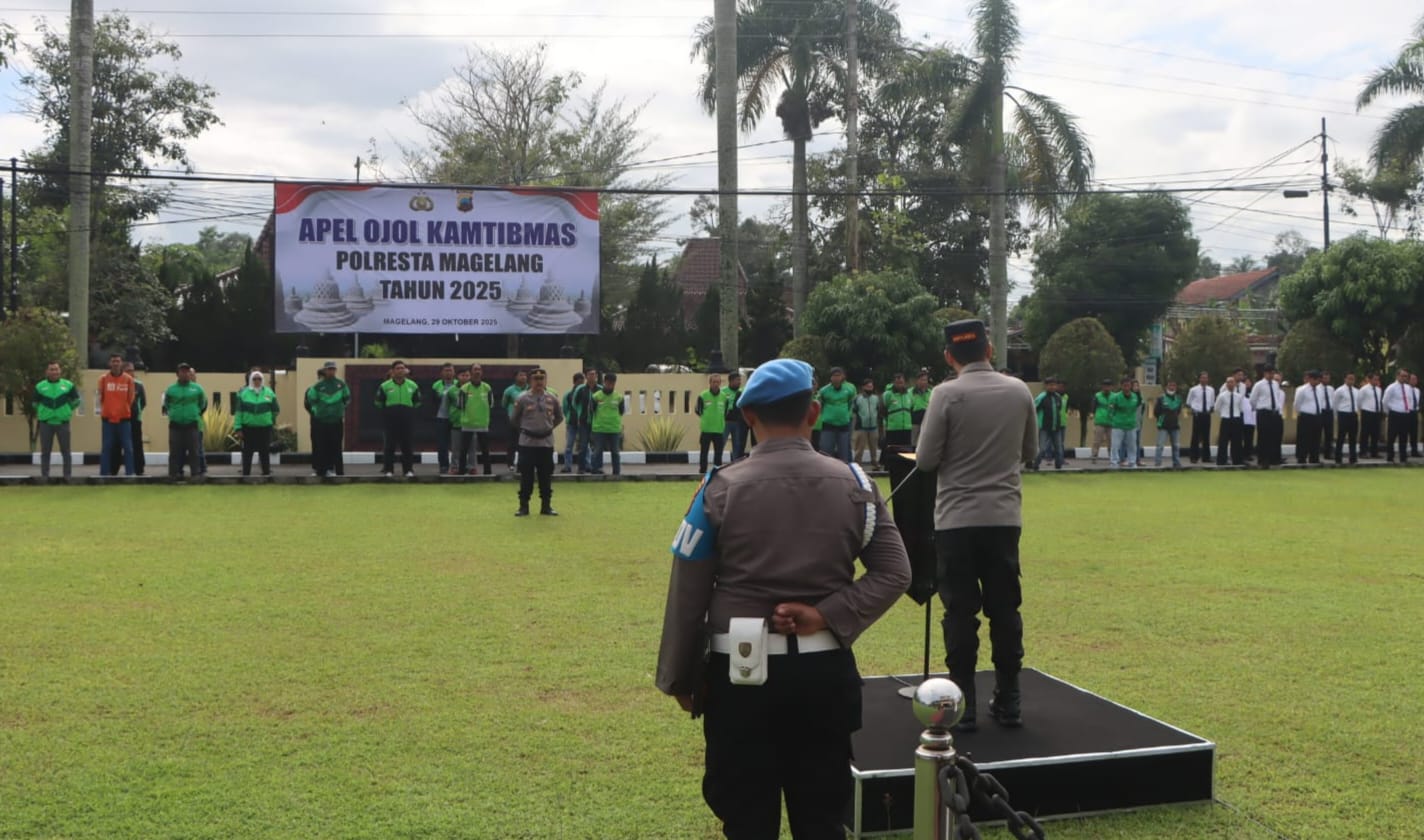 Polresta Magelang Polda Jateng menggelar Apel Ojol Kamtibmas, Rabu (29/10/2025) pagi. (foto: Humas/Syakira)