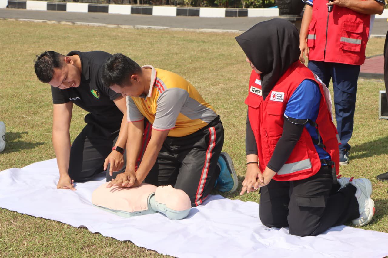 Magelang (Kabar Nusantara) – Palang Merah Indonesia (PMI) Kabupaten Magelang memberikan edukasi tentang Bantuan Hidup Dasar (BHD) kepada personel Polresta Magelang, bertempat di Halaman Apel Polresta Magelang, Jumat (17/10/2025).