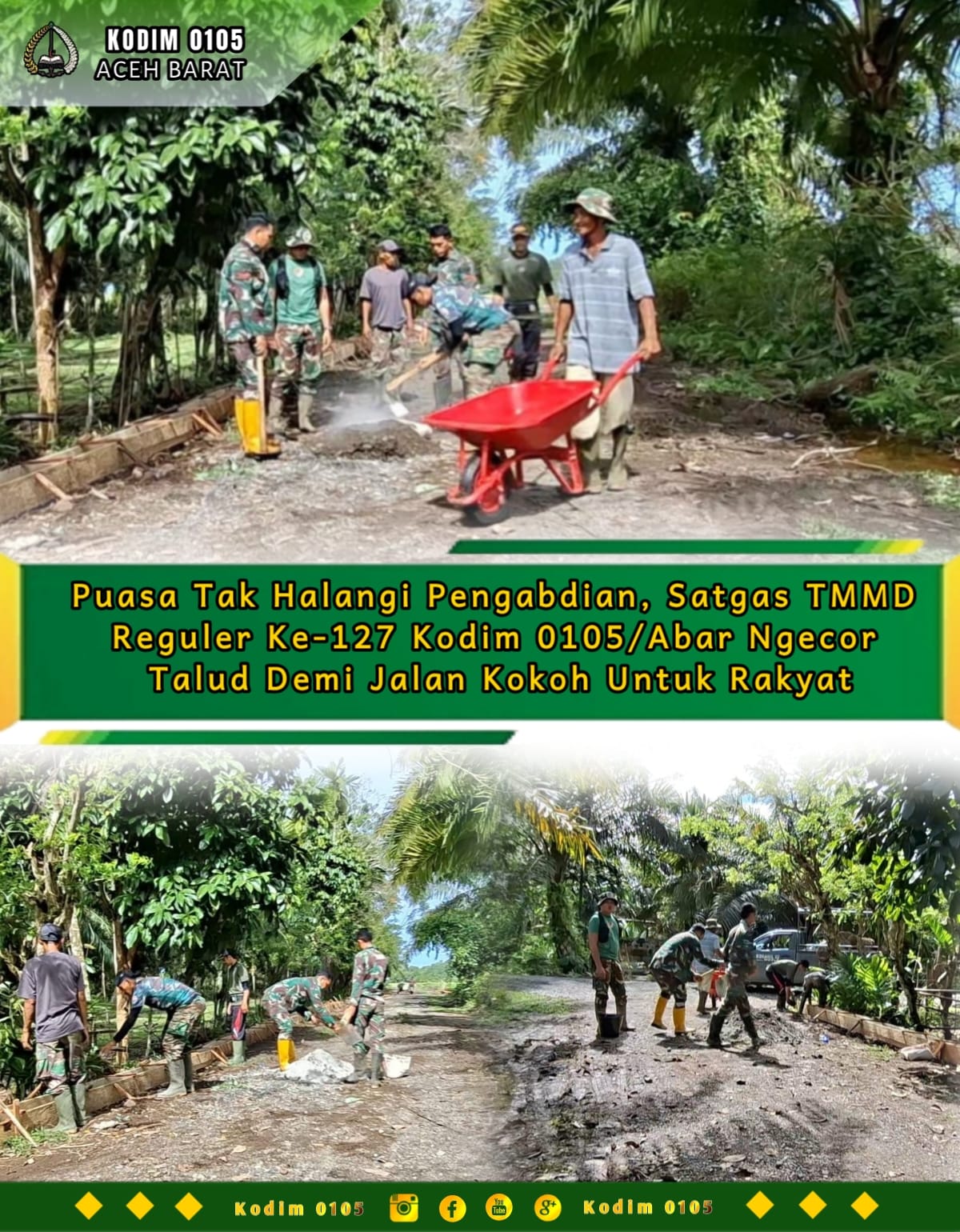 “Di bulan suci Ramadhan ini, Tim Satgas tetap berkeringat di medan pengabdian. Setiap tetes keringat yang jatuh bernilai ibadah. Kami bekerja sepenuh hati, tiada henti demi menghadirkan jalan yang kokoh dan aman untuk rakyat,” ungkap Dansatgas