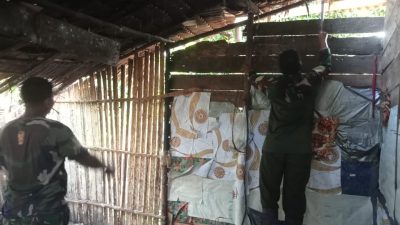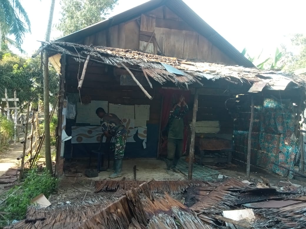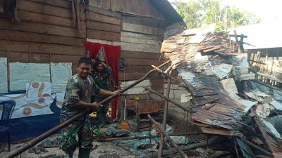 Rumah kecil berdinding rapuh dengan sebagian atap daun rumbia itu kini dibongkar dan diobrak-abrik oleh Personel Satgas TMMD bersama masyarakat setempat untuk direnovasi total. Kayu-kayu lapuk dilepas, dinding usang diruntuhkan, menjadi tanda dimulainya harapan baru bagi Ani Sarlini.