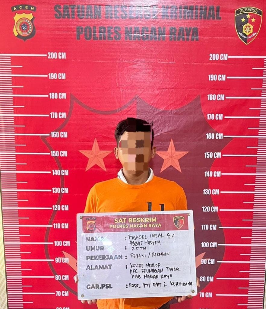 Saat ini, tersangka telah diamankan di Mapolres Nagan Raya untuk menjalani proses hukum lebih lanjut.