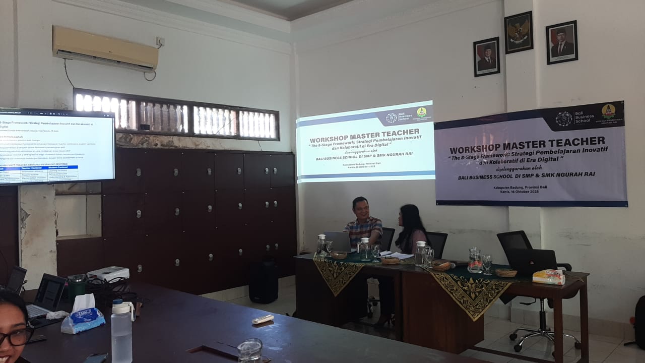 Badung, Bali – Dalam upaya meningkatkan kompetensi guru dan memperkuat kolaborasi dunia pendidikan, Bali Business School International (BBSI) bekerja sama dengan SMP dan SMK Ngurah Rai, di bawah naungan Yayasan Pendidikan Ngurah Rai, menyelenggarakan Workshop Master Teacher bertajuk “The 8-Stage Framework: Strategi Pembelajaran Inovatif dan Kolaboratif di Era Digital.”