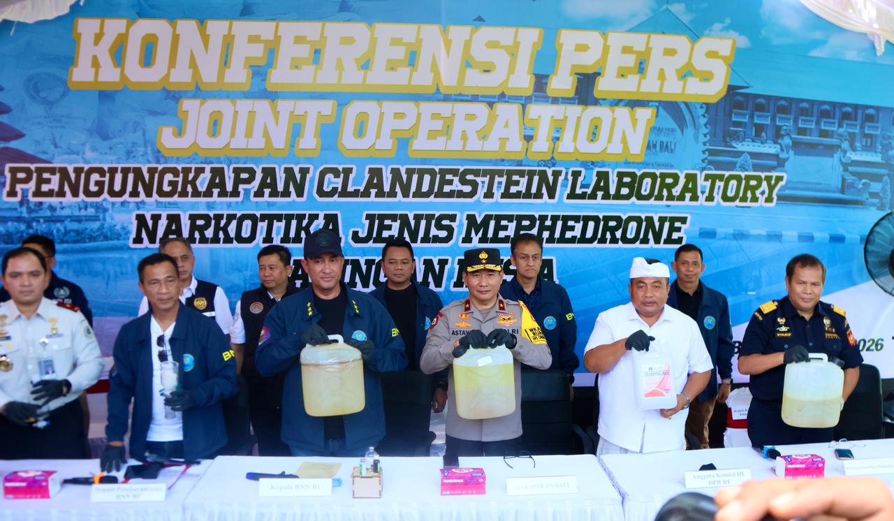 GIANYAR (Kabar-Nusantara.com) – Wakapolda Bali Brigjen Pol. I Made Astawa, S.I.K., menghadiri konferensi pers pengungkapan clandestine lab narkotika jenis mephedrone jaringan internasional yang digelar Badan Narkotika Nasional (BNN) RI di The Lavana De’Bale Marcapada, Pering, Kecamatan Blahbatuh, Kabupaten Gianyar, Sabtu (7/3/2026).